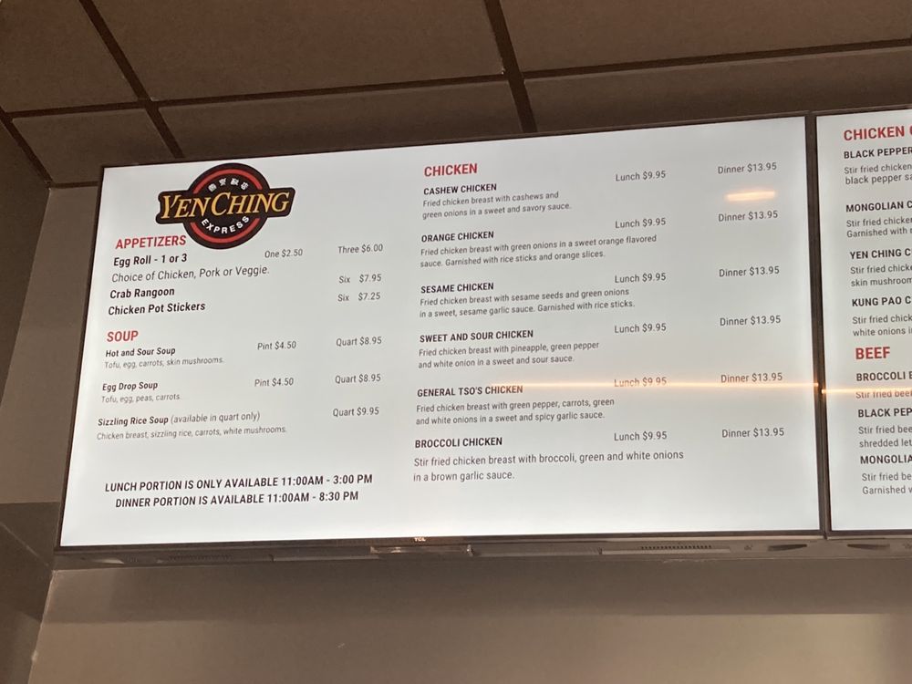 Yen Ching Express Menu